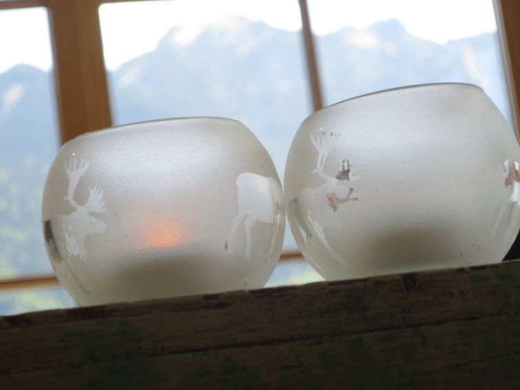 Appartement 3-kamers 92 m2 op de 1e verdieping. Modern en stijlvol ingericht: woonkamer met Kabel-TV (Flatscreen TV), DVD. Uitgang naar het balkon. 1 kamer met 2 bedden. 1 2-pers. kamer. Keuken (oven, afwasmachine, magnetron, elektrische koffiemachine) met eettafel. Douche/WC, bad/douche/WC. Vloerverwarming. Balkon 16 m2, op het zuiden gelegen. Balkonmeubilair, barbecue. Zeer mooi panoramazicht op de bergen. Ter beschikking: wasmachine, droger. Internet (Internet (WiFi), gratis). Niet rokers woning. Inrichting van uitstekende kwaliteit, met parket- en terracottavloeren evenals design meubelen. Zeer mooi uitzicht vanaf het balkon op de Zugspitze, Karwendel en het Wettersteingebergte.
