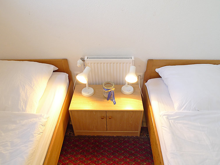 Huis in een rij 3-kamers 75 m2, op de begane grond. Gezellig ingericht: woon-/eetkamer 27 m2 met Sat-TV (Flatscreen TV), radio en CD-speler. 1 kamer 8 m2 met 1 2-pers bed (2 x 90 cm, lengte 180 cm). 1 kamer 6 m2 met 2 bedden (90 cm, lengte 200 cm). Keuken (oven, broodrooster, waterkoker, magnetron, elektrische koffiemachine). Douche/WC. Terras 30 m2. Terrasmeubelen. Ter beschikking: wasmachine, kinderstoel (extra), haardroger. Internet (Internet (WiFi), gratis). Rookvrij huis. Rookmelders. De kledingkast voor de kamer met twee bedden bevindt zich op de gang. DE1A248