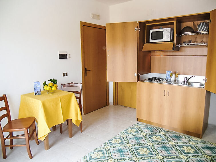 Appartement 1-kamer 20 m2. Eenvoudig en doelmatig ingericht: 1 kamer met 1 2-pers bed, eettafel en TV (Flatscreen TV). Kookhoek (2-pits kookplaat, magnetron, diepvriezer). Douche/bidet/WC. Air-conditioning, heteluchtverwarming. Balkon. Balkonmeubilair. Ter beschikking: haardroger. Internet (Internet (WiFi), gratis). IT065009A1HZHJS3JO