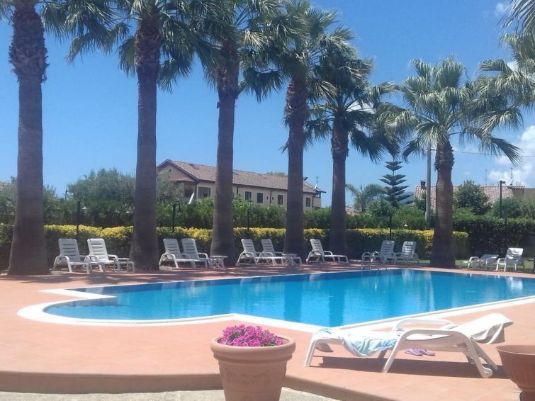 Marina di Ascea: Mooi vakantiepark "Laura", omgeven door bomen. Drukke, zonnige ligging, 350 m van zee, 350 m van het strand, aan een weg. Voor medegebruik: tuin (omheind) planten en bloemen, openluchtzwembad (15 x 6 m, seizoensgebonden beschikbaarheid: 15.Mei. - 15.Sep. openingstijden zwembad: 09:00-21:00). Buitendouche, tuinmeubelen. In het complex: receptie, bar, Internet (WiFi), zonneterras, wasmachine (voor medegebruik, extra). Wissel van linnengoed 1 maal per week (extra wissel te betalen). Wissel van handdoeken 1 maal per week (extra wissel te betalen). Dagelijks schoonmaak (incl.). Ontbijt (incl.). Parkeerplaats bij het huis. Winkel, supermarkt 150 m, bushalte 1 km, treinstation "Ascea" 2 km, zandstrand 350 m. Tennis 400 m, midgetgolf 1 km, manege 600 m. Attracties in de buurt: Zono Archeologica Elea-Velia 300 m, Paestum 40 km, Amalfi Coast 90 km, Sorrentino Peninsula 140 km, Pompei 100 km, Napoli 140 km. De afgebeelde foto is slechts een voorbeeld. Vergelijkbare accommodaties kunnen worden geboekt.