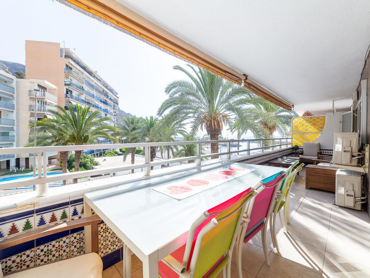 "Navio", appartement 4-kamers 120 m2 op de 3e verdieping. Doelmatig en comfortabel ingericht: woon-/eetkamer met eettafel, Digitale TV, Flatscreen TV en ventilator. Uitgang naar het terras. 1 kamer met 1 2-pers bed (135 cm, lengte 190 cm), bad/WC en air-conditioning. 1 kamer met 1 2-pers bed (135 cm, lengte 190 cm), air-conditioning. 1 kamer met 2 bedden (90 cm, lengte 190 cm). Open keuken (oven, afwasmachine, 3 keramische glas kookplaten, broodrooster, waterkoker, magnetron, diepvriezer, elektrische koffiemachine). Bad/bidet/WC. Terras. Terrasmeubelen. Zijdelings uitzicht op zee. Ter beschikking: wasmachine, strijkijzer, kinderstoel, kinderbed tot 2 jaar, haardroger. Internet (WiFi, gratis). Geschikt voor families. Niet rokers woning. Maximaal 1 huisdier/hond toegestaan. VFT/AL/04115 // Reg. Nr.: ESFCTU0000040140002852570000000000000000VFT/AL/041150