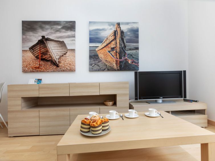Appartement 2-kamers 48 m2 op de 1e verdieping. Licht, modern en gezellig ingericht: woon-/eetkamer met 1 2-pers divanbed (1 x 135 cm, lengte 180 cm), Digitale TV, Flatscreen TV, air-conditioning, heteluchtverwarming en elektrische rolluiken. 1 kamer met 1 2-pers bed (1 x 150 cm), air-conditioning, heteluchtverwarming en elektrische rolluiken. Open keuken (oven, afwasmachine, 3 keramische glas kookplaten, magnetron, diepvriezer, elektrische koffiemachine, pads voor de koffiemachine (Tassimo (Bosch)). Bad/bidet/WC. Uitzicht op het zwembad. Ter beschikking: wasmachine. Parkeerplaats nr. 12 (overdekt). TV alleen ES. HUTG021175 // Reg. Nr.: ESFCTU000017008001283088000000000000000000HUTG0211752