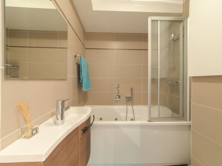 "Sea Breeze", appartement 2-kamers 55 m2. Smaakvol ingericht: woon-/eetkamer met 1 2-pers divanbed, Digitale TV, Flatscreen TV, radio en elektrische verwarming. Uitgang naar het balkon. 1 2-pers. kamer met 1 divanbed (160 cm, lengte 200 cm), 1 2-pers bed (160 cm, lengte 200 cm), douche/WC. Open keuken (afwasmachine, 4 keramische glas kookplaten, elektrische koffiemachine, combimagnetron). Badkamer, dubbele wastafels, hydro massage bad. Ter beschikking: wasmachine, kinderstoel, kinderbed. Internet (Internet (WiFi), gratis). Garage nr. 8 (1 Auto) bij het huis. Rookvrij huis. Maximaal 1 huisdier/hond toegestaan.