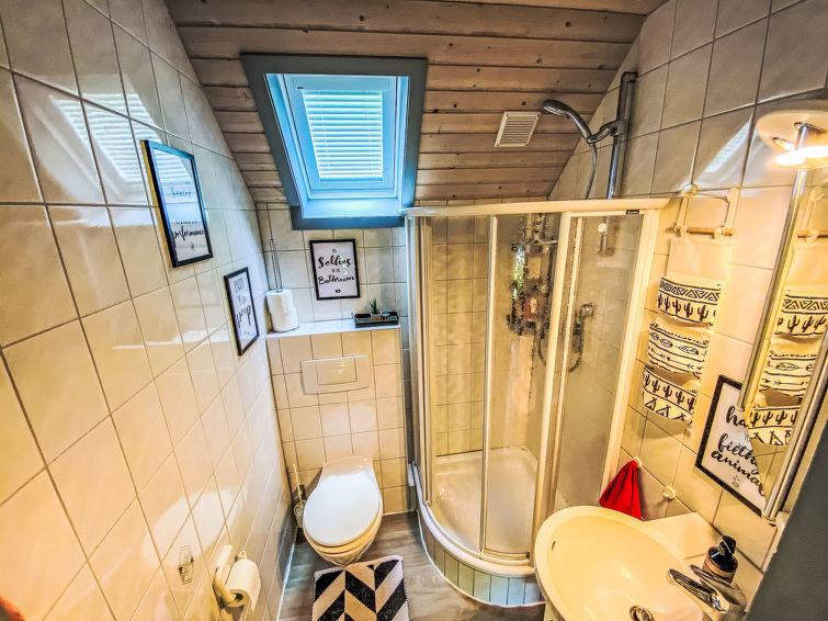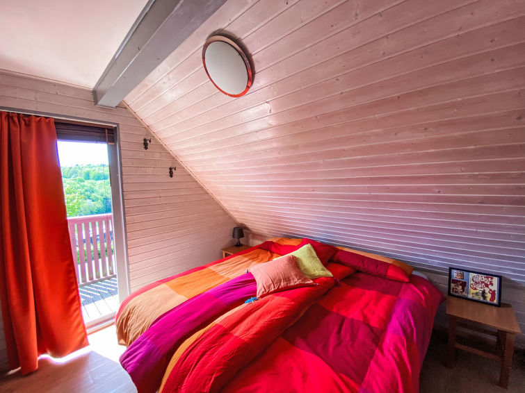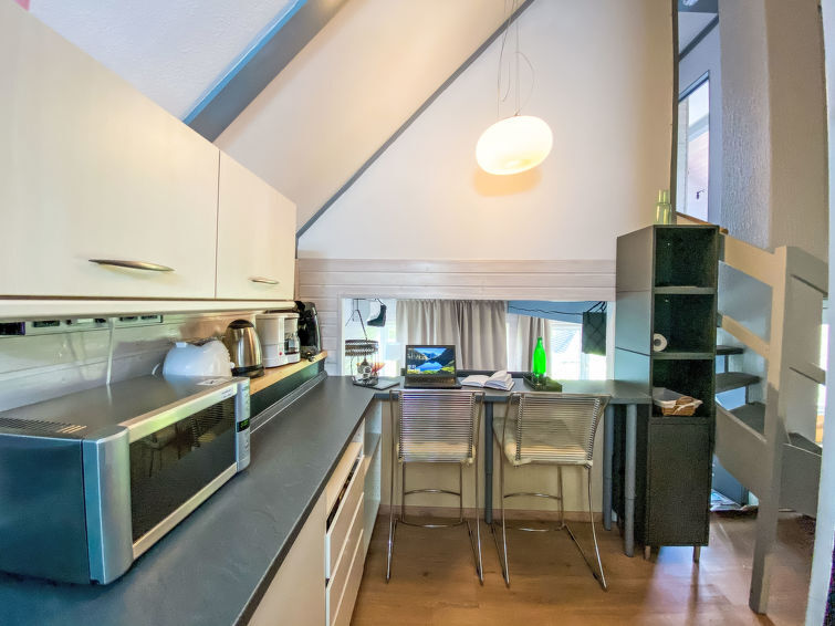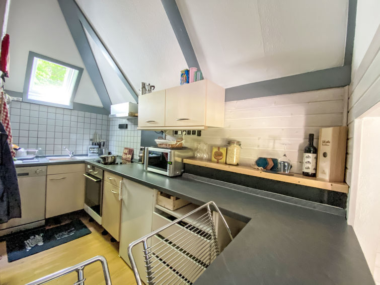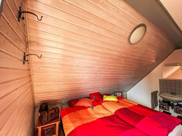 "LoLa", huis 4-kamers 75 m2 op 2 verdiepingen. Gezellig ingericht: woon-/eetkamer met open haard en Sat-TV (Flatscreen TV), DVD. Uitgang naar het terras. 1 kamer met 1 2-pers bed. Open keuken (oven, afwasmachine, 4 keramische glas kookplaten, waterkoker, magnetron, elektrische koffiemachine). Douche/WC, aparte WC. Bovenverdieping: (wenteltrap), 1 kamer met afgeschuinde daken met 1 2-pers bed. Uitgang naar het balkon. 1 kamer met afgeschuinde daken met 2 bedden en wastafel. Uitgang naar het balkon. Elektrische verwarming. Klein balkon, terras gedeeltelijk overdekt. Terrasmeubelen, balkonmeubilair, barbecue. Mooi uitzicht op het meer. Ter beschikking: kinderstoel, kinderbed. Internet (Internet (WiFi), gratis). Rookvrij huis. Rookmelders, brandblusser.