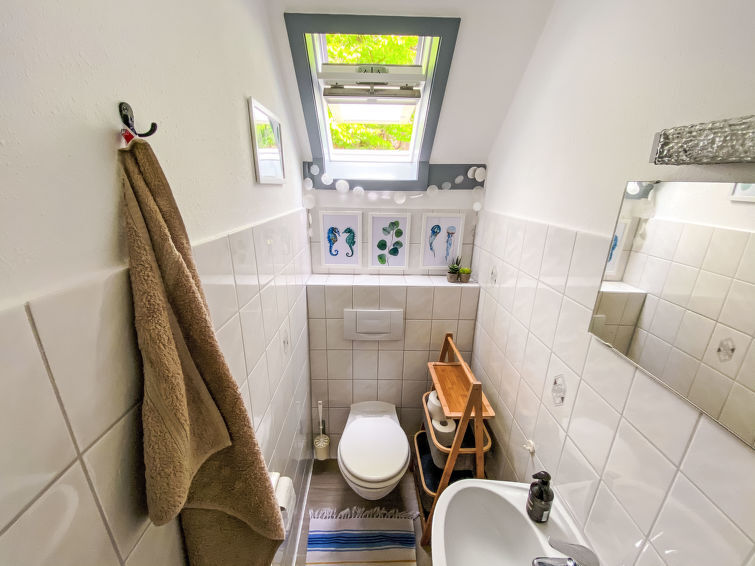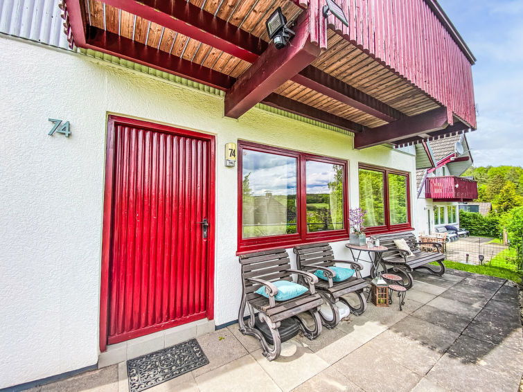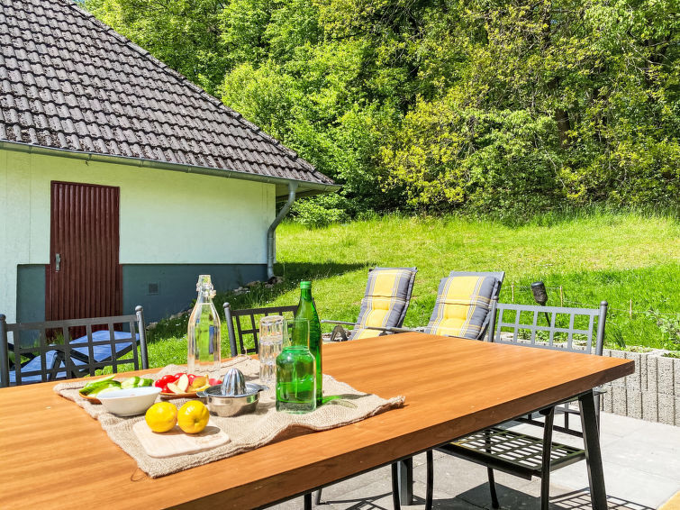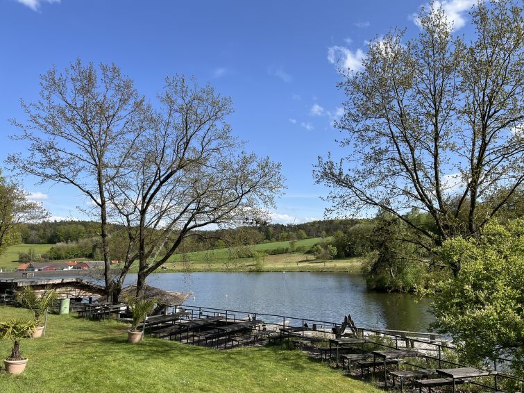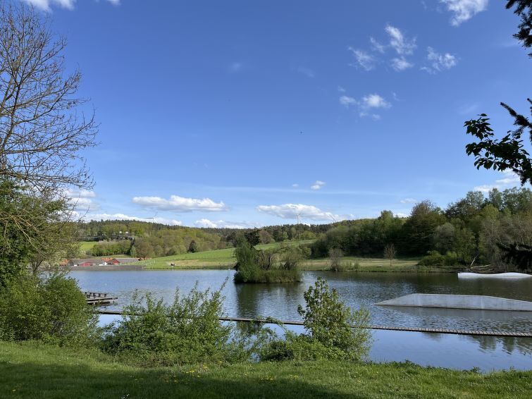 Vakantiedorp "Seepark Kirchheim". Buiten de plaats, 4 km van het centrum van Kirchheim, rustige, zonnige ligging tegen een helling, direct aan het meer, te midden van groen. Openbare parkeerplaatsen in de straat. Winkel 4 km, supermarkt 4 km, winkelcentrum 4 km, bakkerij 4 km, café 400 m, bushalte 400 m, treinstation "Bad Hersfeld" 15 km, openluchtzwembad 4 km, thermaalbad 15 km. Golfterrein (18 holes) 4 km, tennis 10 km, midgetgolf 15 km, wandelroutes 300 m vanaf het huis. Bekende meren kunnen gemakkelijk worden bereikt: Stausee 500 m. Auto noodzakelijk. De eigenaar accepteert geen jeugdgroepen. Het Seepark is opgedeeld in vier "dorpen" met in totaal 139 vakantiewoningen, die rond het meer zijn gegroepeerd (10 hectare water, zwemmen, waterskiën, zonneweide). De route rond het meer is ideaal om te wandelen en te joggen.
