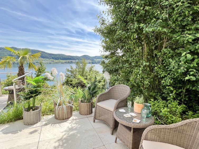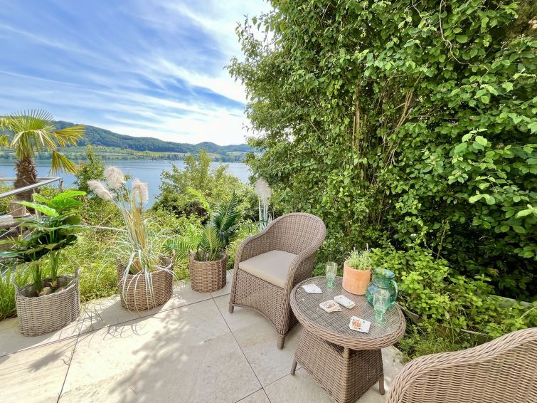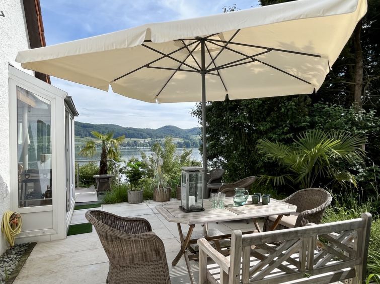Öhningen 4 km van Stein am Rhein: Mooi eengezinswoning "Seepanorama", van 3 verdiepingen. In de wijk Wangen, in het district Höri / westlicher Bodensee, zonnige ligging tegen een helling, in een woonwijk, 300 m van het meer, 500 m van het strand, aan een doodlopende weg. Voor alleengebruik: wild terrein, parkeerplaats bij het huis. Levensmiddelenwinkel 4 km, supermarkt 4 km, restaurant 900 m, bakkerij 4 km, biertuin 900 m, bushalte "Wangen,Pension Auer Linie 200" 100 m, treinstation "Radolfzell" 16 km, grasstrand "Wangen", baai 500 m, strandbad 4 km, meer Bodensee 300 m. Jachthaven 500 m, fietspad 250 m. Attracties in de buurt: Museum Haus Dix 4 km, Museum Hesse 6 km, Rheinfall Schaffhausen 28 km, Insel Reichenau 50 km, Sealife Konstanz 36 km. Wandelgebied Schiener Berg, Hohentwiel, Hinterland Bodensee.