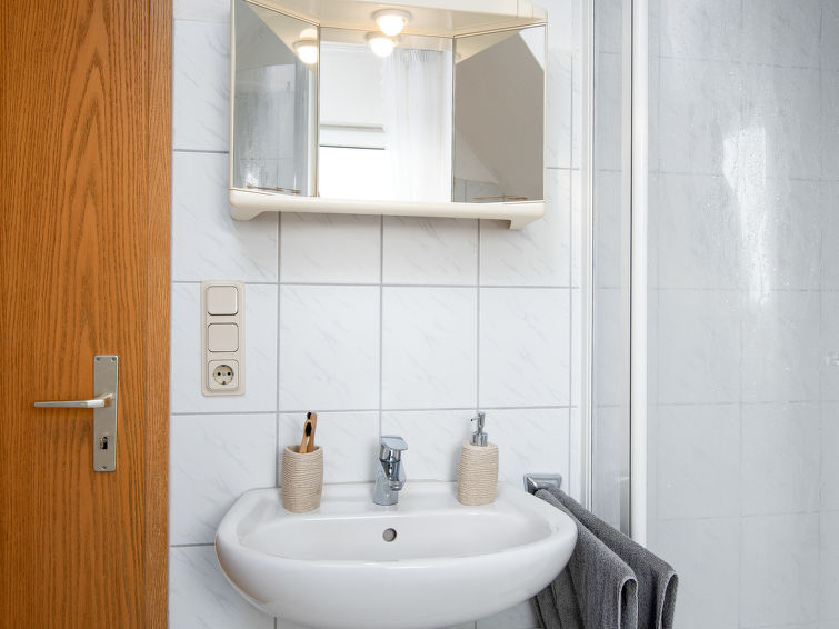 "Mantelmöwe", appartement 2-kamers 65 m2, op de bovenste verdieping. Afgeschuinde daken, gezellig ingericht: woon-/eetkamer 32 m2 met Kabel-TV (Flatscreen TV), stereo-installatie. Uitgang naar het balkon. 1 kamer 13 m2 met 1 2-pers bed (2 x 90 cm, lengte 200 cm). Kookhoek (4-pits kookplaat, oven, broodrooster, waterkoker, magnetron, elektrische koffiemachine). Douche/WC. Balkon 10 m2, op het noordwesten gelegen en op het westen gelegen. Balkonmeubilair. Ter beschikking: kinderstoel (extra), haardroger. Internet (Internet (WiFi), gratis). Niet rokers woning. Rookmelders.