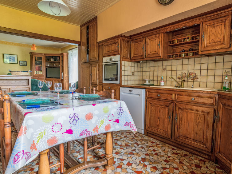 Huis 5-kamers 110 m2 op 2 verdiepingen. Comfortabel en mooi ingericht: woon-/eetkamer 25 m2 met TV (Flatscreen TV), houtkachel. Keuken 15 m2 (oven, afwasmachine, 4 inductiekookplaten, broodrooster, waterkoker, magnetron, elektrische koffiemachine, pads voor de koffiemachine (SENSEO) extra) met eettafel. Aparte WC. Bovenverdieping: 3 kamers, elke kamer heeft 1 2-pers bed (140 cm, lengte 200 cm). 1 kamer met 1 bed (90 cm, lengte 200 cm). Badkamer. Elektrische verwarming. Terras 9 m2, overdekt. Terrasmeubelen, barbecue, ligstoelen (2). Ter beschikking: wasmachine. Maximaal 2 huisdieren/honden toegestaan. Rookmelders. Aanbod door een particulier volgens art. 155, IV van CGI.