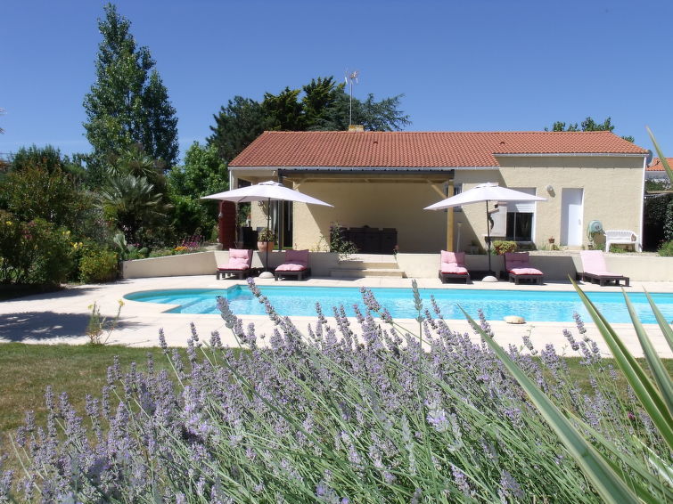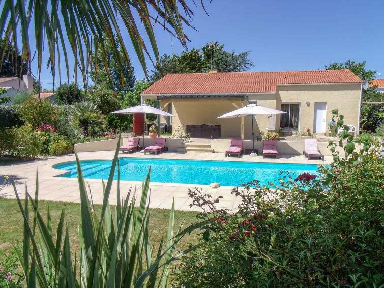 Olonne sur Mer 3 km van Les Sables d'Olonne: Mooi, comfortabele villa "Villa Les Cygnes", bouwjaar 1990, omgeven door bomen. Aan de rand van de plaats, 3 km van het centrum van Olonne sur Mer, rustige ligging in een woonwijk, 2.5 km van zee, 2.5 km van het strand. Voor alleengebruik: groot, mooie, verzorgde tuin 2.000 m2 (omheind) met gazon en bloemen, openluchtzwembad verwarmd (10 x 5 m, 50 - 200 cm diepte, seizoensgebonden beschikbaarheid: 03.Mei. - 30.Sep.) met oprolbaar afdekscherm. Tafeltennis, terras, tuinmeubelen. Berging beschikbaar. Parkeerplaats (voor 4 auto's) op het terrein. Winkel 1 km, supermarkt 1 km, restaurant 1 km, bushalte 500 m, zandstrand 2.5 km. Tennis 3 km.