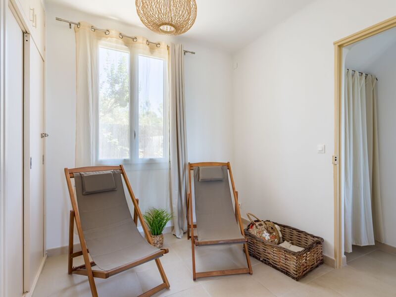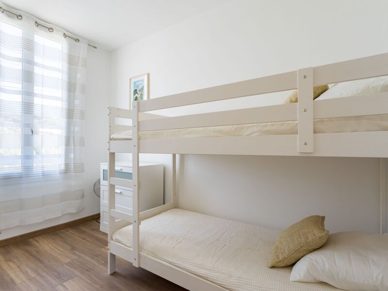 Villa 4-kamers 98 m2 op 2 verdiepingen. Licht, comfortabel en mooi ingericht: woonkamer met TV (Flatscreen TV), air-conditioning. Uitgang naar het terras. Keuken (afwasmachine, 4 inductiekookplaten, broodrooster, waterkoker, magnetron, diepvriezer, elektrische koffiemachine) met eettafel en TV (Flatscreen TV). Aparte WC. Bovenverdieping: 1 kamer met 1 2-pers bed (140 cm, lengte 200 cm). 1 kamer met 1 2-pers bed (160 cm, lengte 200 cm). 1 kamer met 1 x 2 stapelbedden (90 cm, lengte 200 cm). Douche/WC. Air-conditioning, boiler (100 liter). Houten vloeren. Terras 10 m2, terras 9 m2. Terrasmeubelen. Zeer mooi uitzicht op zee. Ter beschikking: wasmachine. Internet (WiFi, extra). TV alleen FR. Rookmelders. Aanbod door een particulier volgens art. 155, IV van CGI.