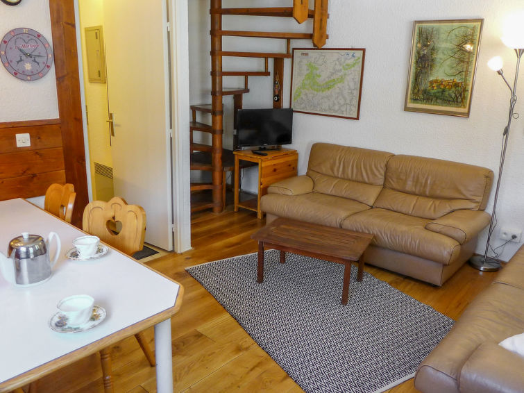 Appartement 4-kamers 48 m2 op 2 verdiepingen op de 4e verdieping. Woon-/eetkamer met TV. Uitgang naar het balkon. Kookhoek (4-pits kookplaat, oven, afwasmachine, waterkoker, elektrische koffiemachine, pads voor de koffiemachine (Nespresso) extra). Bovenverdieping: 1 kamer met 1 2-pers bed. 2 kamers, elke kamer heeft 1 x 2 stapelbedden. Bad/WC. Elektrische verwarming. Balkon, op het zuidoosten gelegen. Zeer mooi uitzicht op de bergen. Ter beschikking: Internet (WiFi, gratis). Geen parkeerplaats. TV alleen FR. Rookmelders. 740560017363L