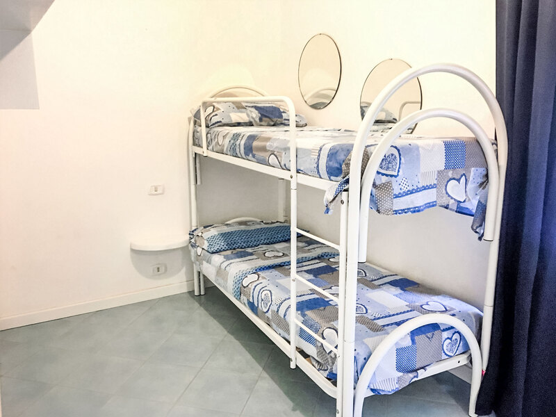 "Pithecusa", appartement 3-kamers 80 m2 op de 1e verdieping. Licht, doelmatig en comfortabel ingericht: open woon-/eetkamer met 1 bed, eettafel en Kabel-TV (Flatscreen TV), air-conditioning en heteluchtverwarming. Uitgang naar het balkon. 1 2-pers. kamer met panoramavenster. 1 kamer met 1 x 2 stapelbedden. Kleine keuken (4-pits kookplaat, oven, diepvriezer). 2 douche/bidet/WC's. Verwarming, heteluchtverwarming. Verwarming alleen beschikbaar van 01.11. tot 31.03. Klein balkon 5 m2. Balkonmeubilair. Zeer mooi uitzicht op zee en de plaats. Ter beschikking: wasmachine, haardroger. Internet(WiFi), gratis). Geschikt voor families.