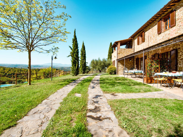 Landhuis "Malagronda", 400 m boven zeeniveau, gerenoveerd, omgeven door bomen en weiden. 6 appartementen in de woning. 8 km van het centrum van Città della Pieve, rustige, verhoogde ligging, 12 km van het meer. Voor medegebruik: park 7.000 m2, planten en bomen, mooie tuin ter ontspanning, openluchtzwembad (14 x 7 m, 120 - 180 cm diepte, seizoensgebonden beschikbaarheid: 01.Mei. - 30.Sep.) met zout-elektrolyse. Buitendouche, tafeltennis, basketbal, volleybal, tuinmeubelen, barbecue, stookplaats, kinderspeelplaats. In het huis: Internet (WiFi), centrale verwarming, Verwarming ter plaatse te betalen (01.Nov. - 31.Mrt.). 1.5 km lange toegangsweg (onverharde weg). Parkeerplaats op het terrein. Winkel 3 km, winkelcentrum 3 km, restaurant 2 km, bar 2 km, bushalte 2.1 km, treinstation "Chiusi" 7 km, thermaalbad "Chianciano Terme" 21 km, meer (zwemmen) "Trasimeno" 12 km. Attracties in de buurt: Panicale 11 km, Castiglione Del Lago 12 km, San Feliciano 26 km, Cortona 30 km, Montepulciano 30 km, Val d'Orcia 44 km. Auto noodzakelijk.